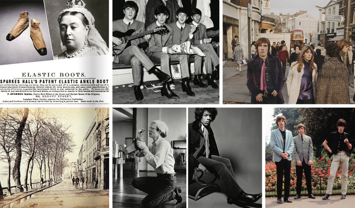 Initially called ”Paddock Boots” due to their popularity while riding, the boots underwent a name change in London’s swinging 60’s and became known as the ”Chelsea Boot” based on their association with King’s Road (A street in the Borough of Chelsea in western London)...Embraced by the Rock & Roll community, from The Rolling Stones and the Beatles to Twiggy, they were the must-have accessory & everybody wanted to walk in their boots.