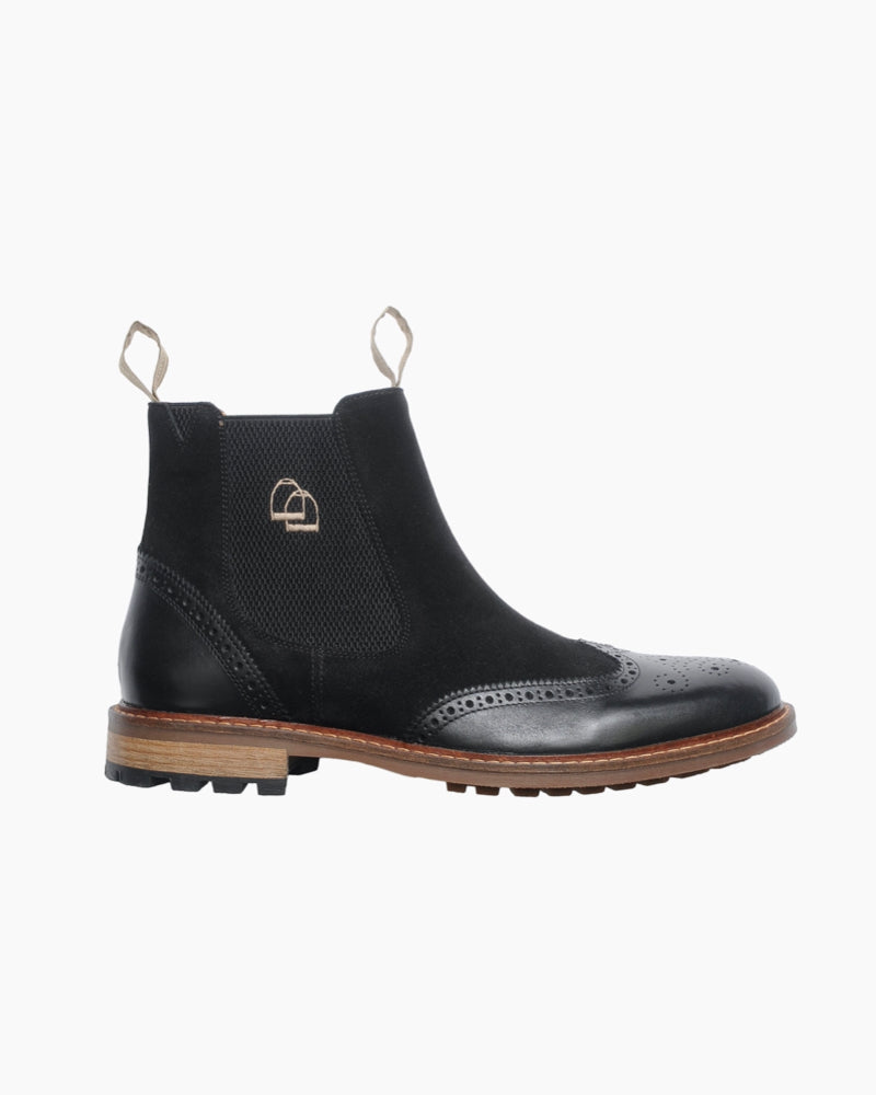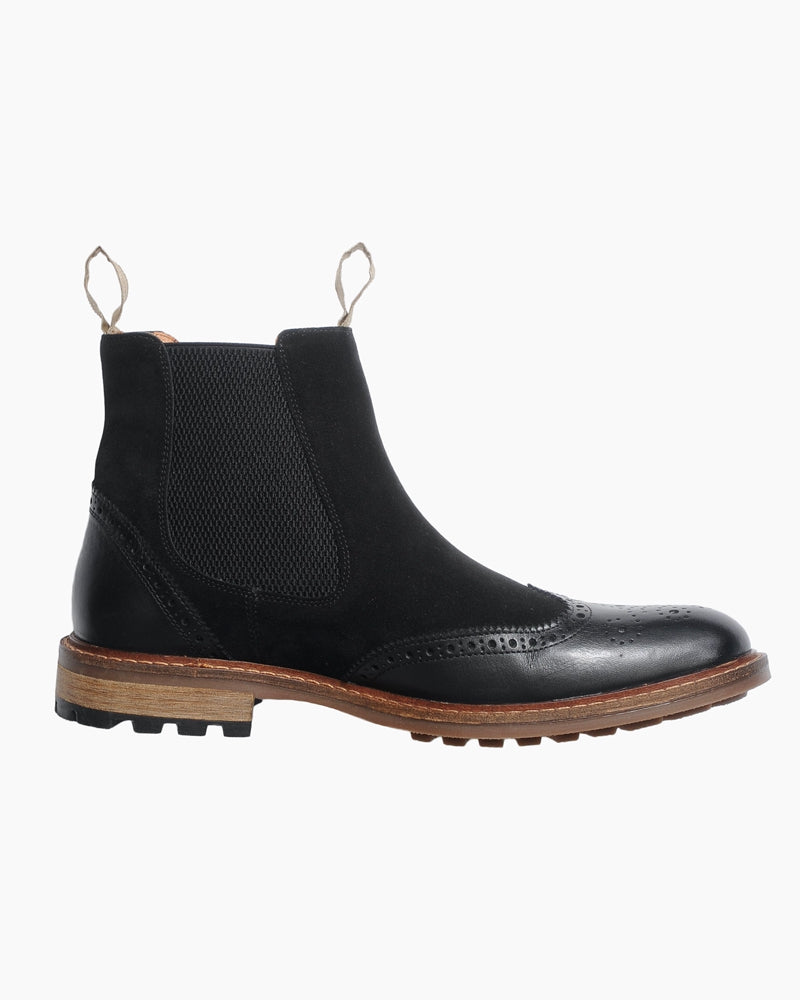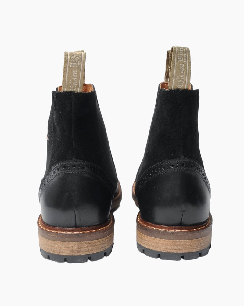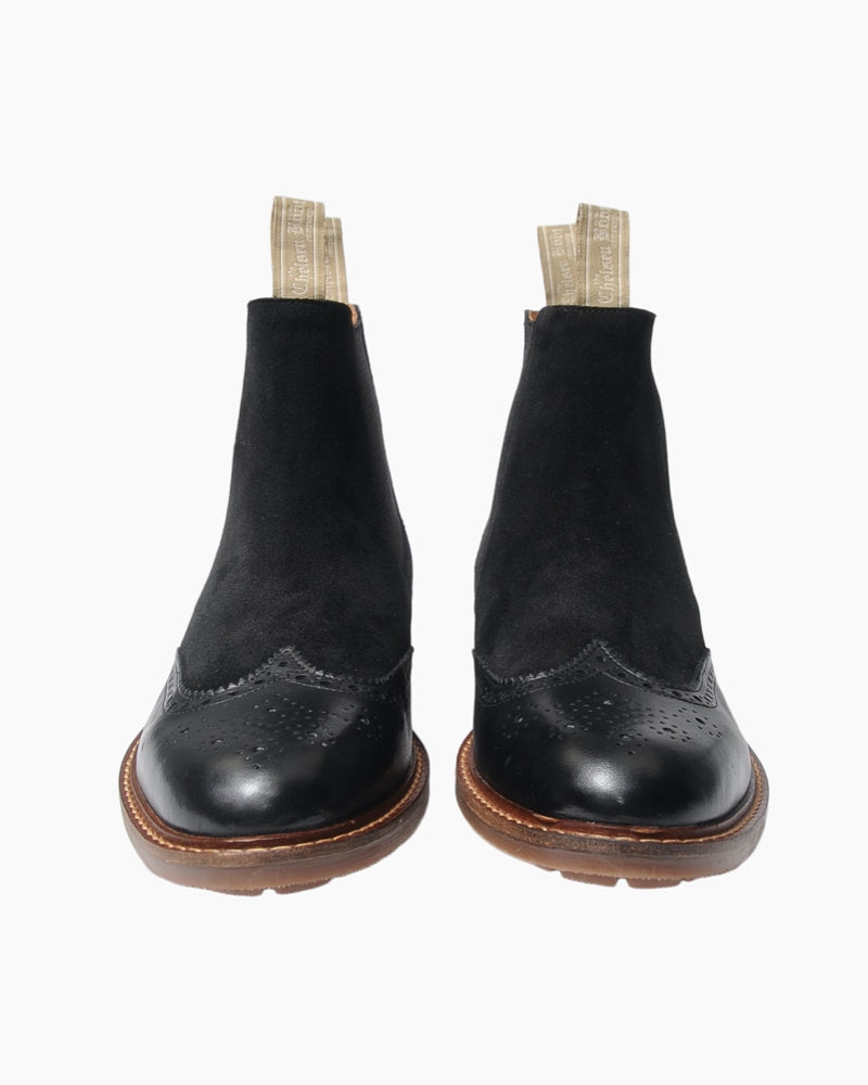Men's Two Tone Brogue Boot | Black Leather and Suede Combo