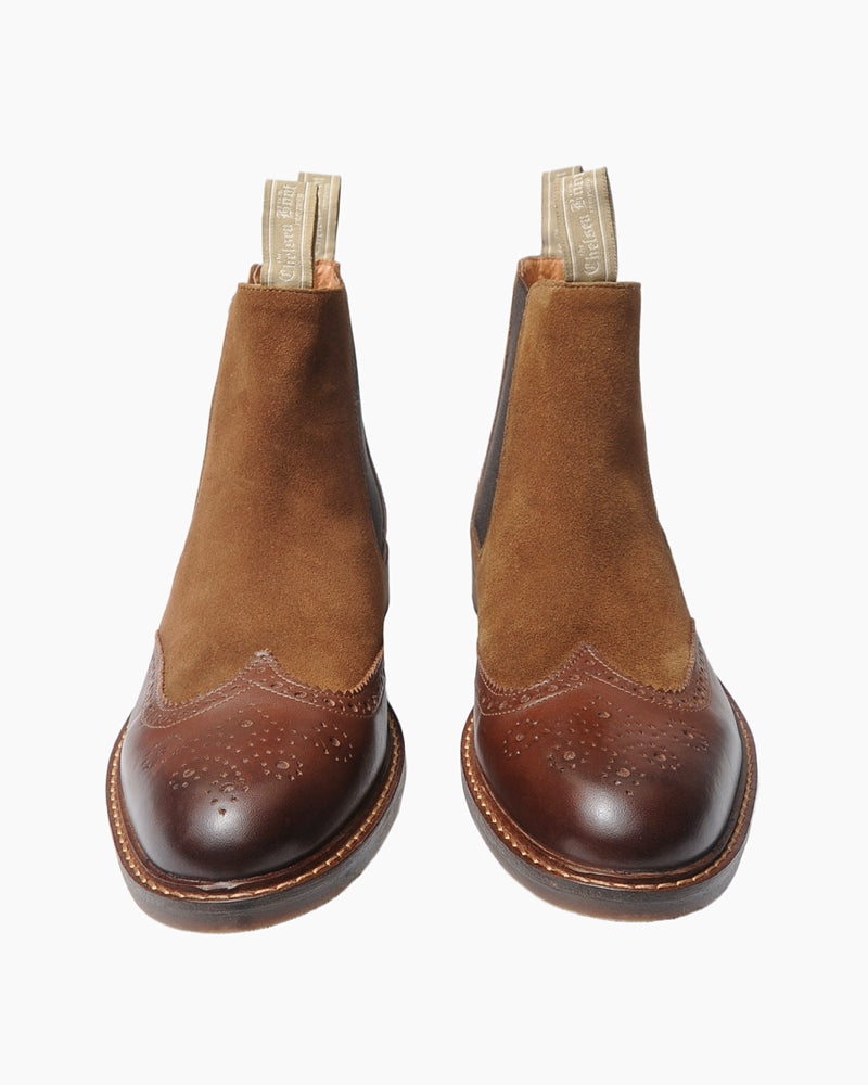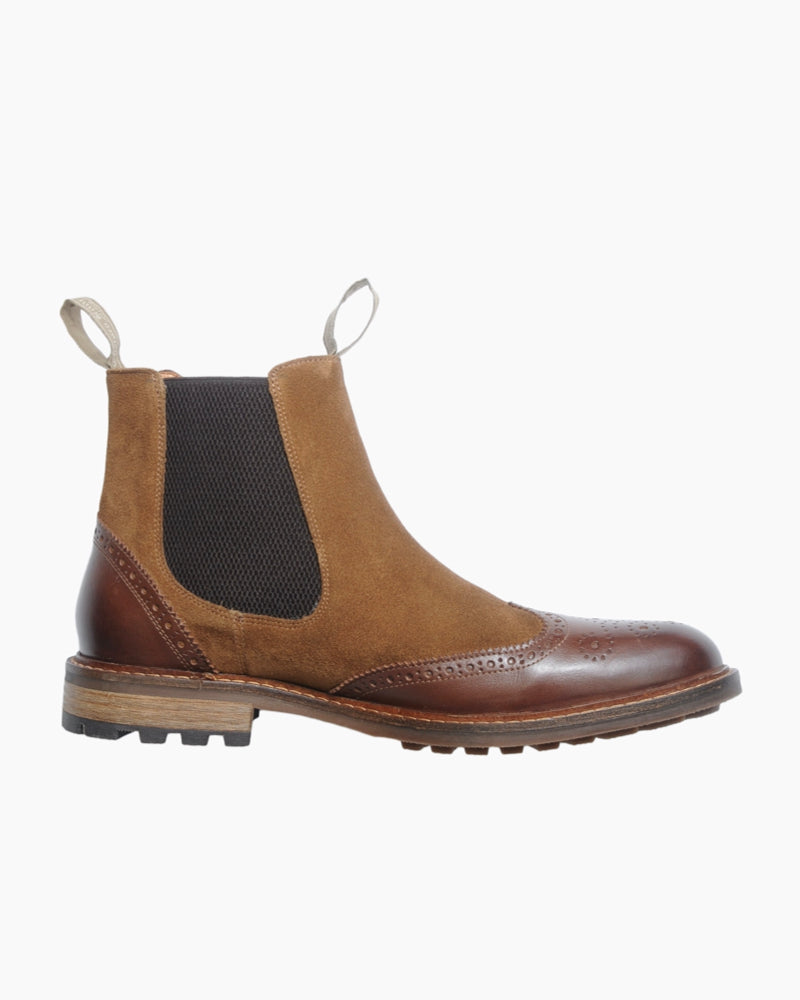 Men's Two Tone Brogue Boot | Brown Leather and Suede Combo