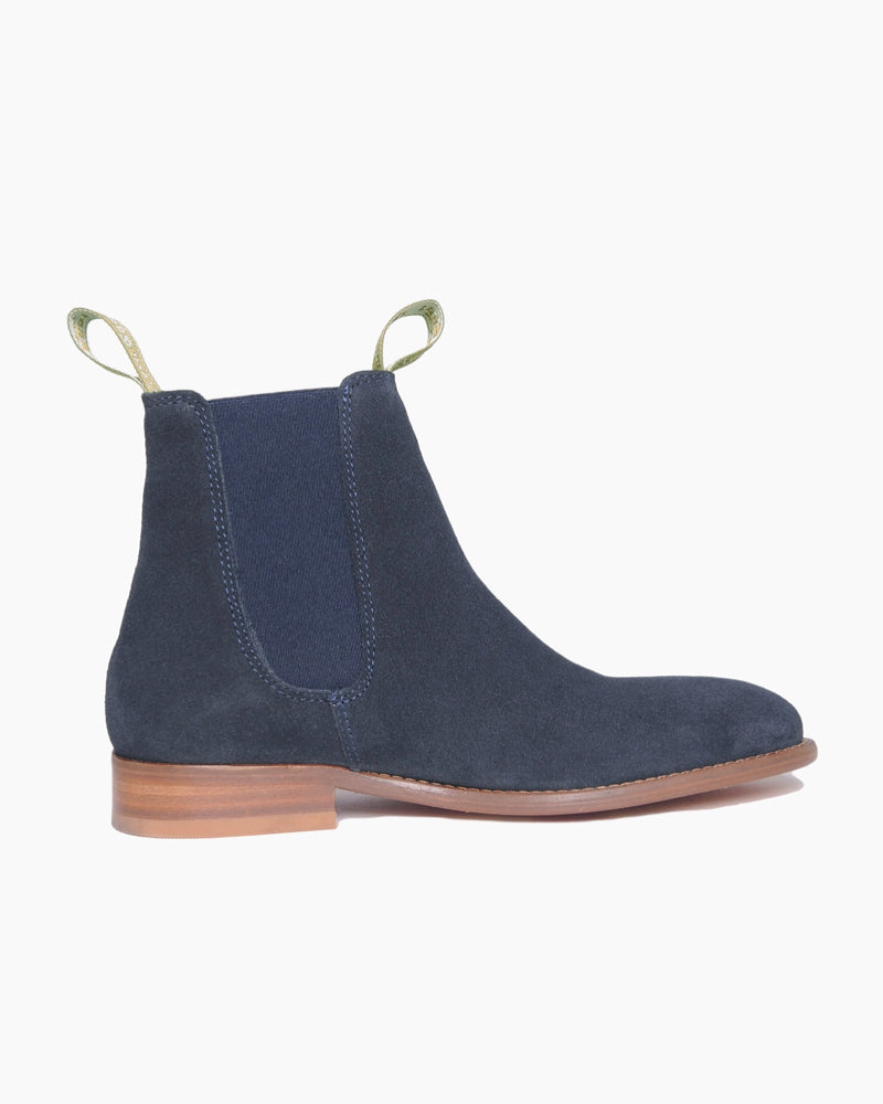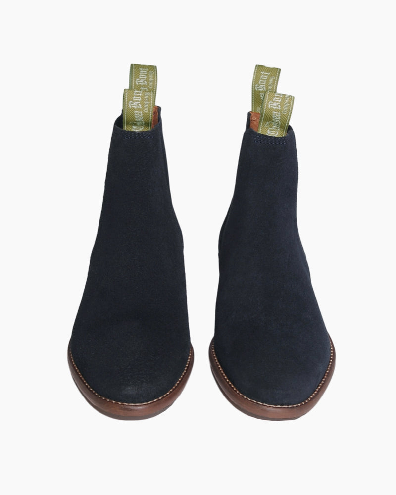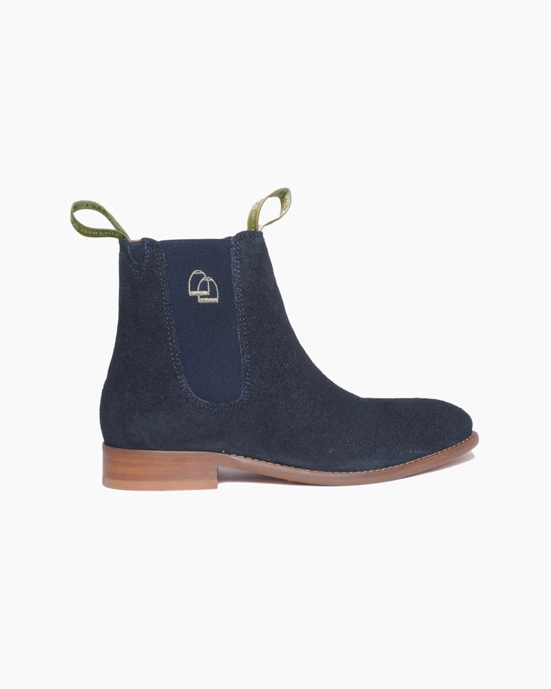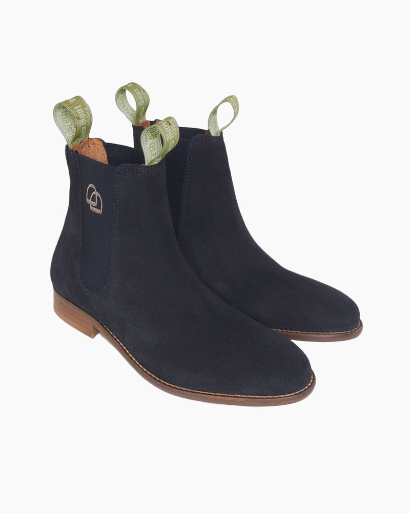 These stunning boots have been handcrafted in Europe with high quality leathers. These boots are crafted from soft navy suede and feature elasticated panels with our embroidered stirrups logo. The signature Chelsea Boot Company resilient large finger pulls make it smooth when pulling them on. The low 2cm leather heel offers a premium finish while the rubber heel cap ensures grip and a full leather lining and removable insole provides breathable comfort throughout the day.