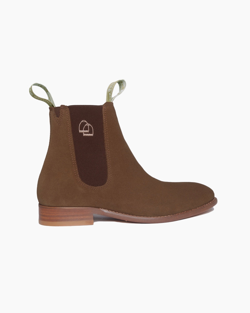 These stunning boots have been handcrafted in Europe with high quality leathers. These boots are crafted from soft tan suede and feature elasticated panels with our embroidered stirrups logo. The signature Chelsea Boot Company resilient large finger pulls make it smooth when pulling them on. The low 2cm leather heel offers a premium finish while the rubber heel cap ensures grip and a full leather lining and removable insole provides breathable comfort throughout the day.